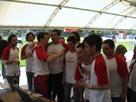 # 09 Luglio 2004 ..... Si è purtroppo fermato al girone di qualificazione il cammino della squadra della Contrada che, anche se pur conquistando un solo punto, si è comunque comportata benissimo in campo. Ma veniamo alla cronaca. Nel secondo incontro si è dovuta arrendere ai Campioni in carica del Trequanda capitolando per 5 a 1. Da sottolineare però, che il risultato non rispecchia fedelmente il vero valore espresso dalle due compagini in campo. Un primo tempo a lunghi tratti dominato dalla nostra squadra, ma le doti e le prodezze espresse da parte del portierino avversario (ragazzo nato e cresciuto in Contrada) hanno impedito di raccogliere i giusti frutti del gioco espresso. Poi nel secondo tempo, partita equilibrata che però vedeva aumentare il divario. Onore ai vincitori, viene da dire, che resta una gran bella squadra. Nell'ultima partita di mercoledì, ci giocavamo tutto. Alla nostra squadra l'unico risultato utile per accedere alle semifinali era vincere e i ragazzi che sono scesi in campo ce l'hanno messa veramente tutta per riuscire nell'impresa, ma la compagine locale del Petroio ha ben lottato ed è riuscita a vincere per 3 a 2, in una partita vissuta nell'incertezza fino al triplice fischio finale. La redazione fa un applauso a tutti i ragazzi che si sono impegnati a portare alto il nome della Contrada nei due tornei disputati, e ringrazia tutti coloro che li hanno seguiti e incoraggiati durante queste due avventure Bianco Rosse.
