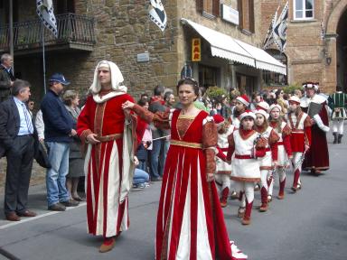 Durante la mattinata i bravissimi sbandieratori dei quattro Castelli hanno fatto volare nel cielo di Torrita la sua bandiera biancorossa...
