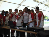 # 18 Giugno 2004 ..... Torneo di calcetto ai campini......... Si chiude con una vittoria per 8 a 7 contro il Bar lo stop l'avventura della Contrada al Torneo ai Campini. Da segnalare la strepitosa performance di Kukur che, con il suo gol iniziale siglato dopo un'azione travolgente degna dei più grandi fuoriclasse, dava lo sprint ad una partita giocata ottimamente dai ragazzi della Contrada.Clicca qui per vedere i risultati