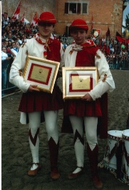 01 giugno 2006... SABNDIERATORI E TAMBURINI... Saranno i Tamburini Yuri e Filippo e gli Sbandieratori Riccardo e Simone a rappresentare la nostra Contrada nella gara di venerdì 2 giugno tra le Contrade. I pochi giorni a disposizione per le prove non rendono tranquilli i nostri ragazzi.